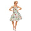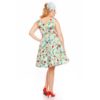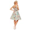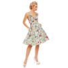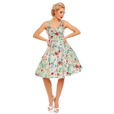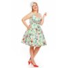 This stylish vintage dress features a retro floral print, fitted flattering bodice, flirty sweetheart neckline, a gathered bust with button detail, concealed side zip and a 50’s style full circle skirt. The gorgeous vintage cocktail dress is made from a lovely soft cotton with stretch.
